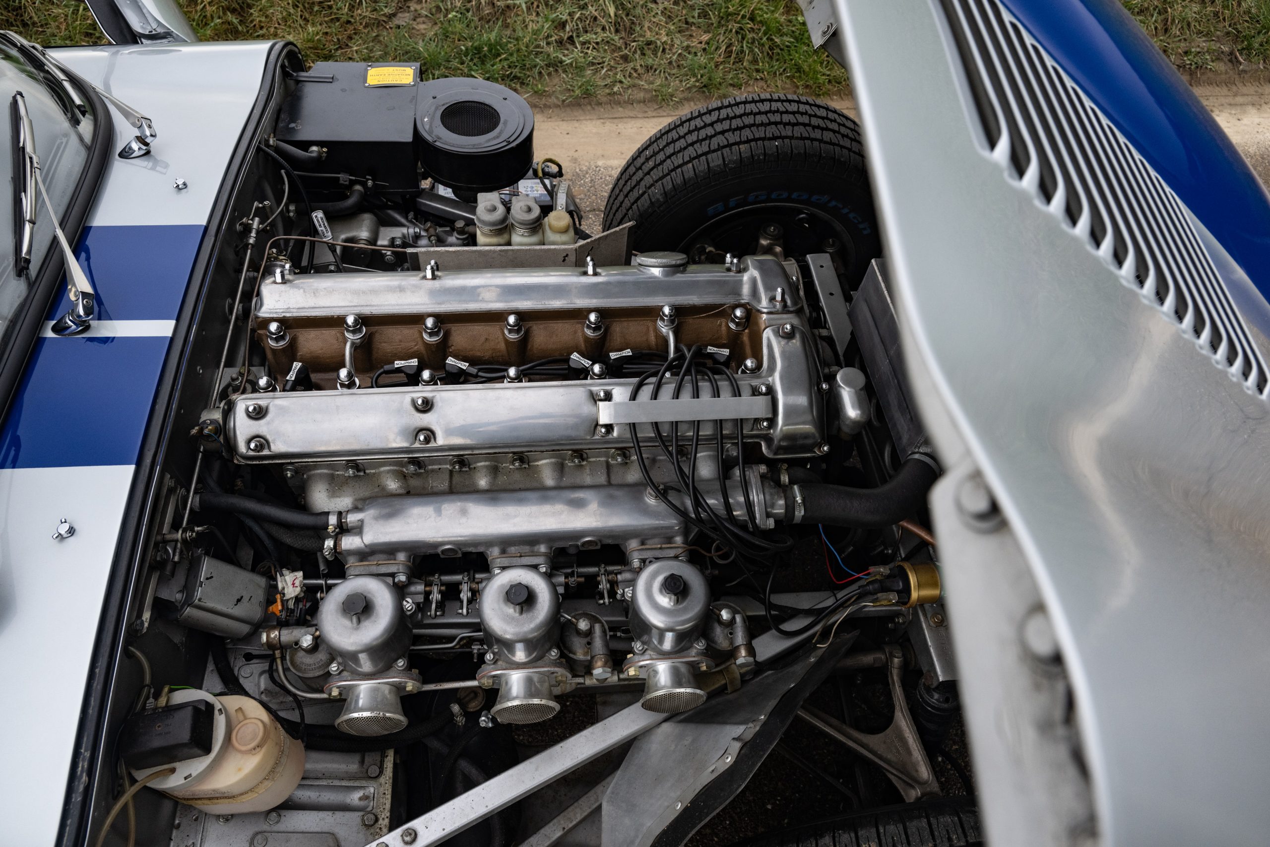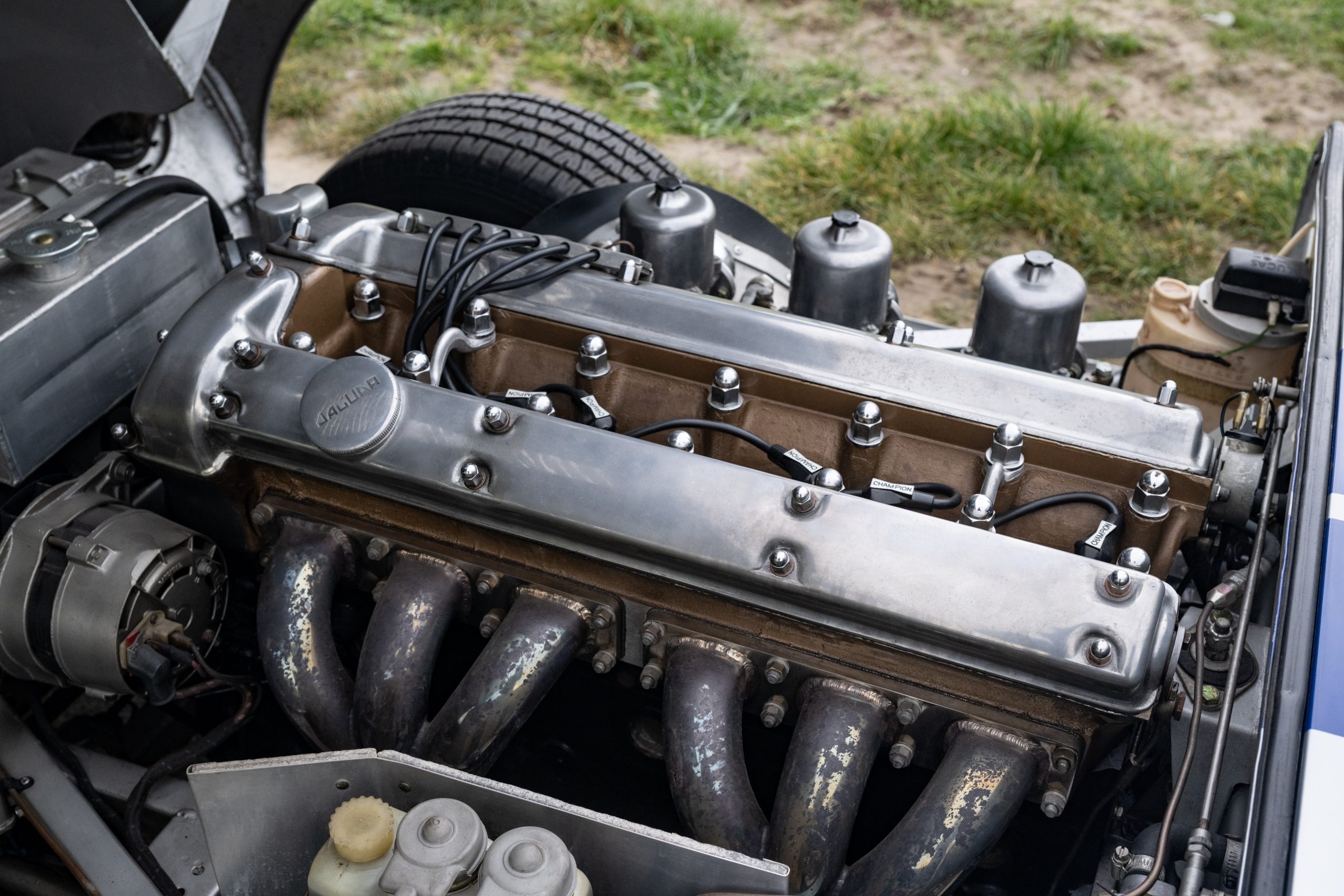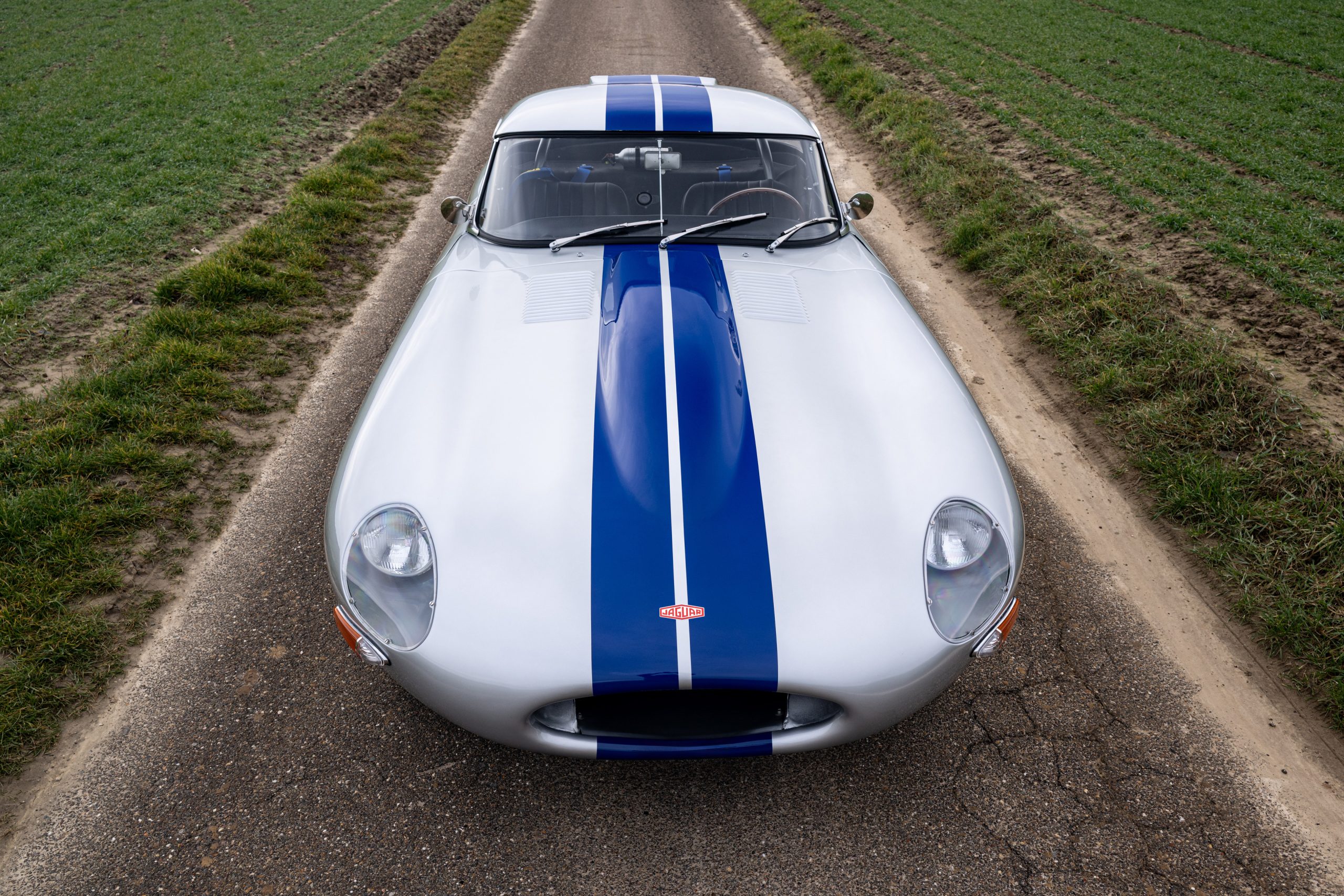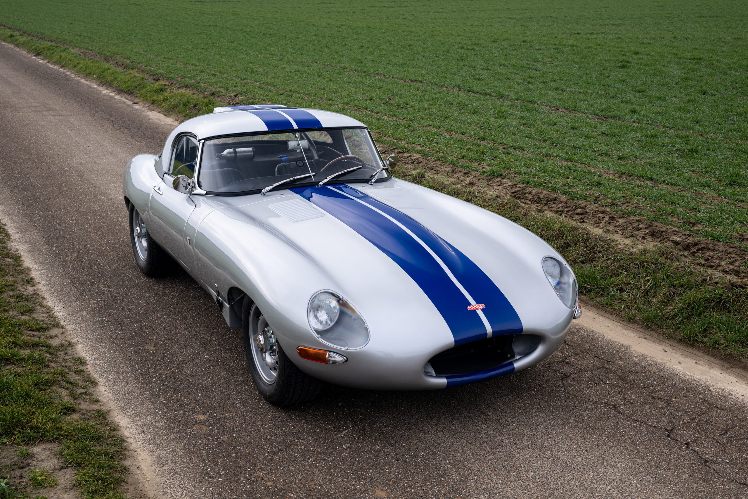 This example was originally delivered as a Left-Hand Drive Open Two-Seater with hardtop and has been carefully prepared to evoke the appearance and spirit of the extremely rare factory Lightweight E-Types. The car benefited from a comprehensive restoration approximately 20 years ago, providing a solid and high-quality base for its current presentation.