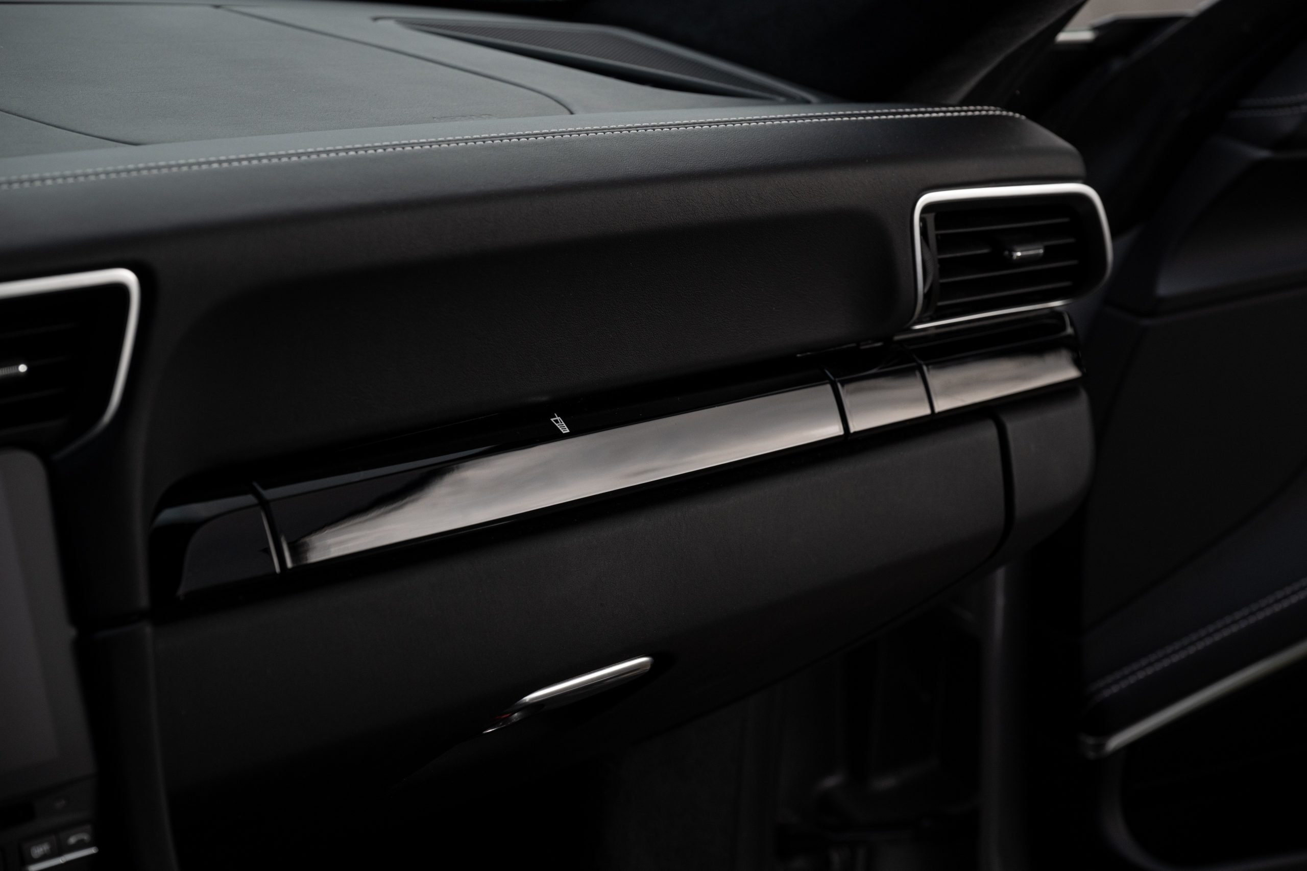 Inside, the cabin is equipped with the factory carbon bucket seats originally developed for the Porsche 918 Spyder – a rare and highly desirable option that delivers exceptional lateral support, reduced weight and a truly motorsport-inspired driving position. The interior atmosphere is focused, clean and purposeful, designed for maximum driving engagement.