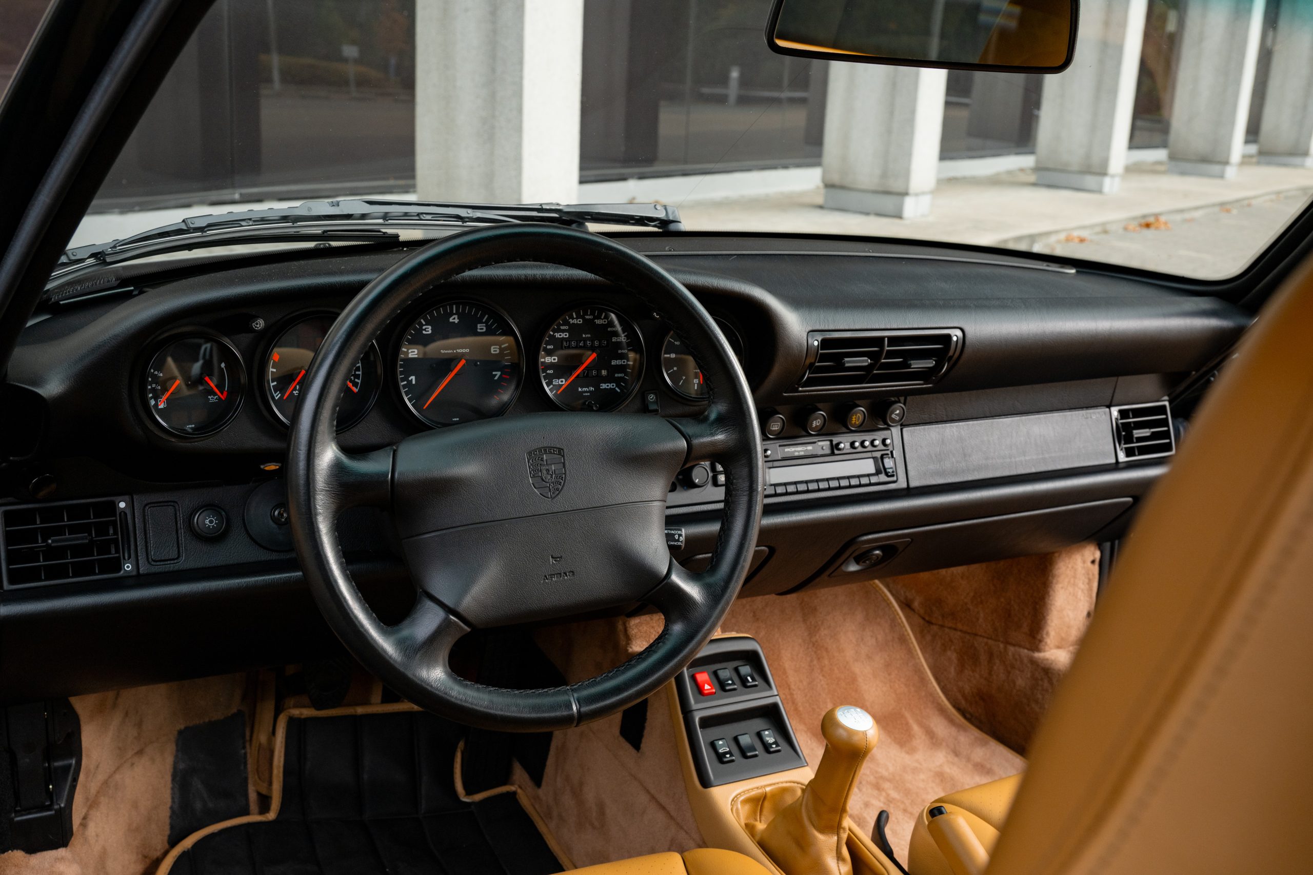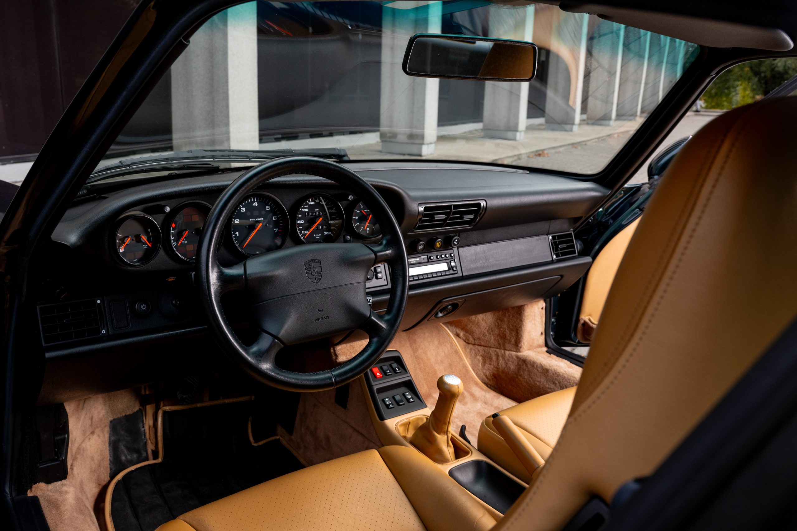 Under the rear lid sits the famous 3.6L flat-six with 285 hp, paired with a 6-speed manual gearbox and all-wheel drive. The car feels tight, precise, and exactly as a 993 should — engaging, responsive, and beautifully balanced.