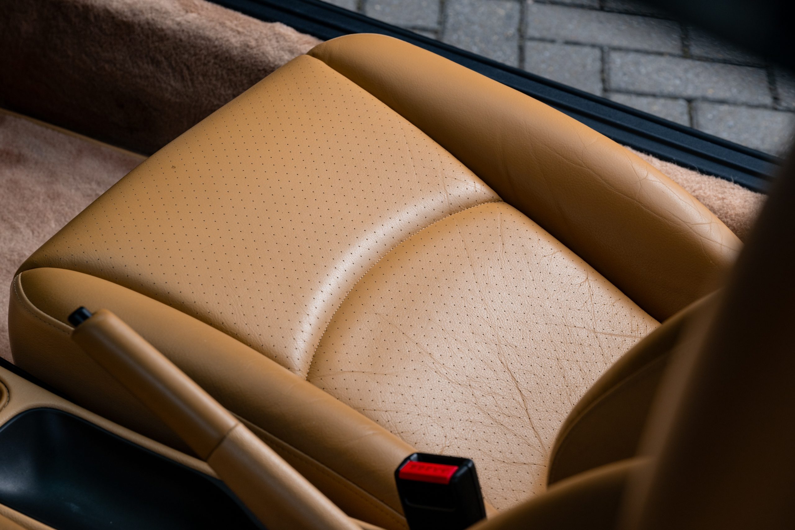 The beige leather is still original and shows very light wear. The body is clean, accident-free, and the paint shines beautifully.